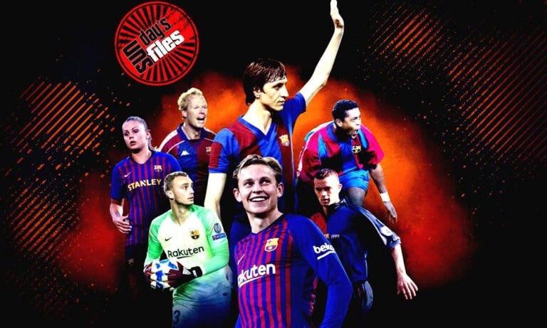 Ο Φρένκι Ντε Γιονγκ είναι ο 20ός Ολλανδός που φοράει τη φανέλα της Μπαρτσελόνα θέλοντας να βάλει το όνομά δίπλα στους άλλους οκτώ σπουδαίους «οράνιε» που έχουν γράψει λαμπρή ιστορία με τα «μπλαουγκράνα»