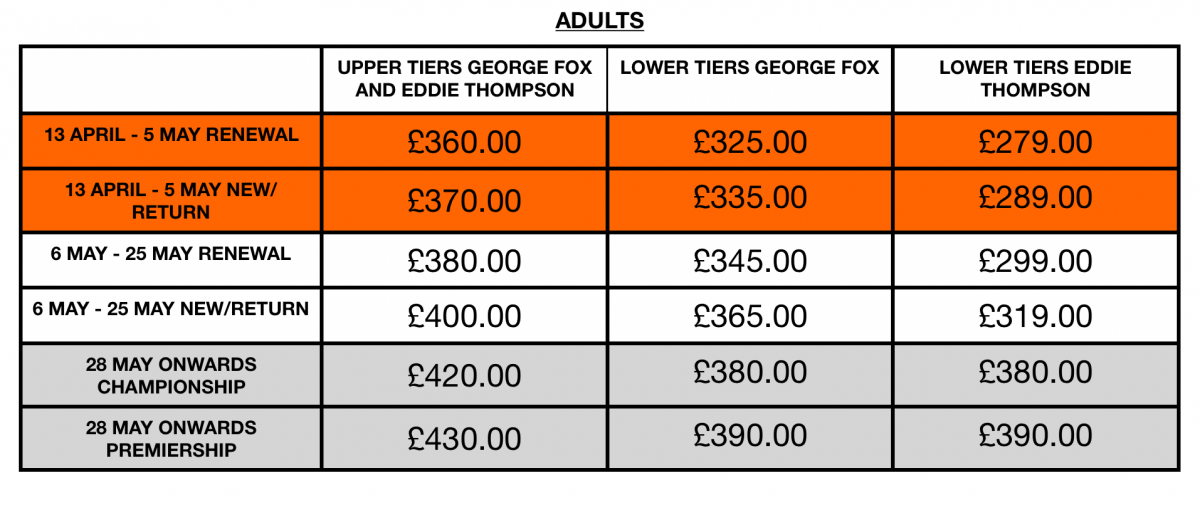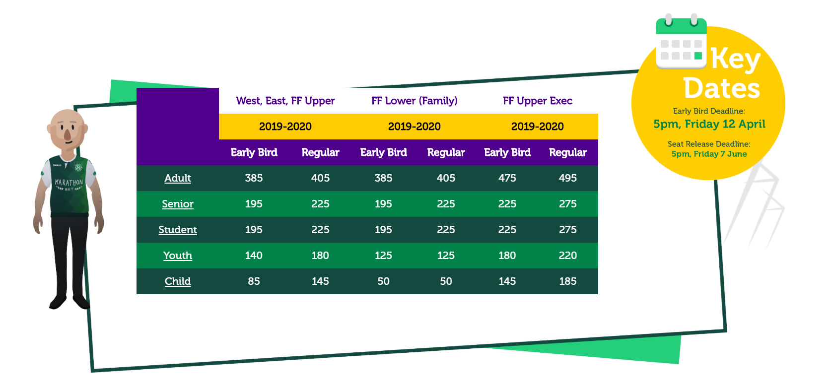 Ας πάρουμε για παράδειγμα δύο ομάδες που αναφέρθηκαν παραπάνω. Το φθηνότερο διαρκείας της Χιμπέρνιαν είναι 432 ευρώ και της Νταντί στα 313 ευρώ. Αναφερόμαστε φυσικά σε τιμές ενηλίκων.