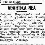 - 19 Απριλίου 1944 Να μια ενδιαφέρουσα είδηση. Η Πάτρα νίκησε τον Πανιώνιο με 2-0 στο βόλεϊ (15-11 και 15-9 τα σετ) αλλά οι Νεοσμυρνιώτες απάντησαν στο μπάσκετ με 33-27! Γενικά οι ειδήσεις για άλλα σπορ πλην ποδοσφαίρου δεν ήταν και τόσο συχνές εκείνη την εποχή.