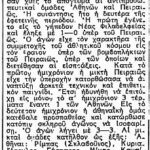 ΠΗΓΕΣ: Εφημερίδα Η ΒΡΑΔΥΝΗ, Εφημερίδα ΑΚΡΟΠΟΛΙΣ, Εφημερίδα ΑΘΗΝΑΪΚΑ ΝΕΑ, Εφημερίδα ΑΘΛΗΤΙΚΗ ΗΧΩ