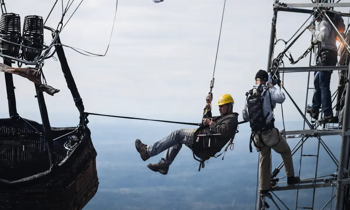 Χρησιμοποίησαν περισσότερα από ένα συστήματα σχοινιών και πολύ μακριές γραμμές, γιατί ένα μόνο σχοινί δεν φτάνει όταν μιλάμε για τέτοιο ύψος και για άνεμο που κάνει το φορτίο να ταλαντεύεται. Σε κάποια σημεία η εικόνα ήταν ανατριχιαστική. Το καλάθι έγερνε και μετά ξαναγύριζε, σαν να δοκίμαζε τα νεύρα όλων.
