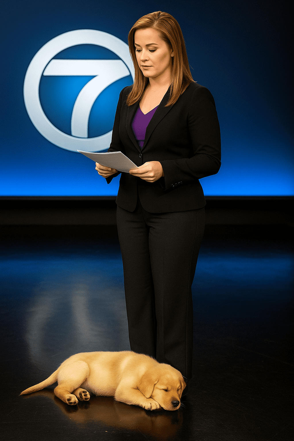 Η παρουσιάστρια αποφάσισε να τον φέρει μαζί – αθόρυβα, διακριτικά. Κατά τη διάρκεια του δελτίου, μόνο το πάνω μέρος του σώματός της ήταν ορατό στην κάμερα. Κανείς δεν κατάλαβε.