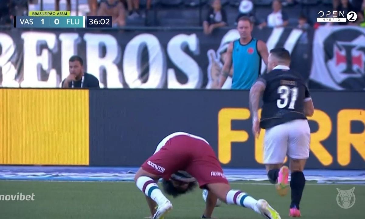 Εκτέθηκε ο πρώην αμυντικός του Ολυμπιακού Μαρσέλο, πέφτοντας στο έδαφος μετά από ντρίμπλα αντιπάλου παίκτη.