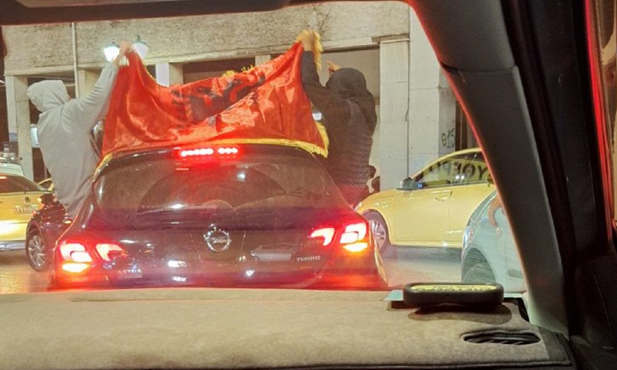 Δείτε παρακάτω φωτογραφίες από Αλβανούς με σημαίες σε δρόμους της Αθήνας