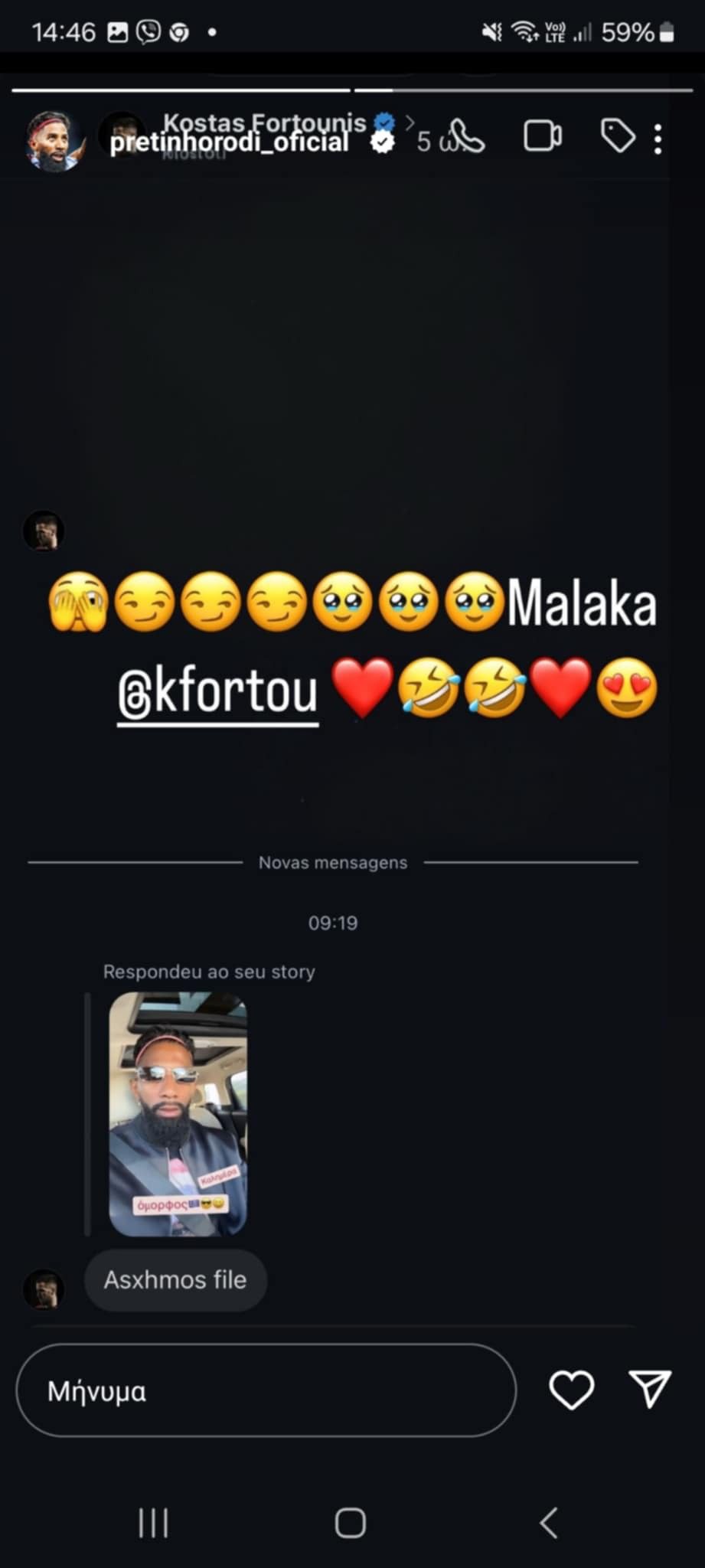 Μάλιστα, η απάντηση αυτή δεν πέρασε απαρατήρητη από τον Ροντινέι, ο οποίος δημοσίευσε νέο story, δείχνοντας το μήνυμα του Φορτούνη και αστειευόμενος τον χαρακτήρισε «μ@λ@κ@»!