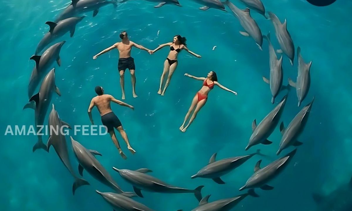 Στην αρχή νόμιζαν πως ήταν παιχνίδι ή περιέργεια. Όμως, τα δελφίνια ήταν συντονισμένα, σχημάτιζαν κύκλους γύρω από τους κολυμβητές και χτυπούσαν δυνατά τις ουρές τους στο νερό — σημάδι έντονης ενόχλησης ή προειδοποίησης.
