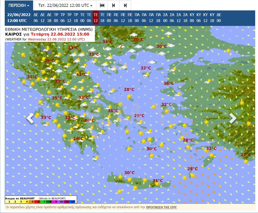 Μάλιστα οι χάρτες με την πρόγνωση του καιρού που υπάρχουν στο site της ΕΜΥ…μιλούν για θερμοκρασίες που θα αγγίζουν ακόμη και τους 44 βαθμούς στην Κεντρική Ελλάδα!