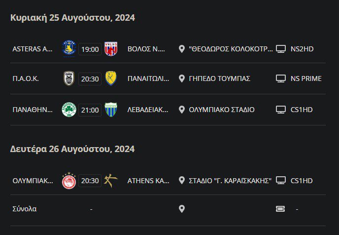 | Παναθηναϊκ..> | 2024-08-09 19:27 | 22K | ||