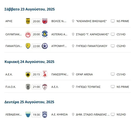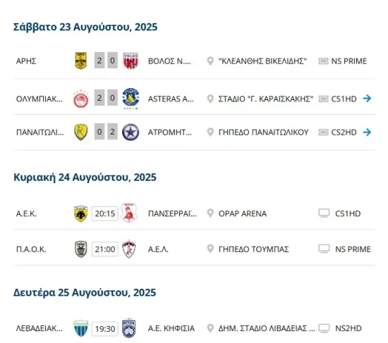 | Άρης-Βόλος-..> | 2025-08-23 21:59 | 18K | ||