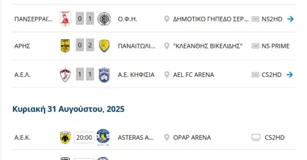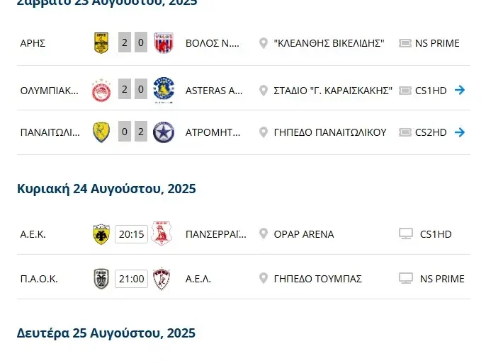 | Άρης-Βόλος-..> | 2025-08-23 21:59 | 34K | ||